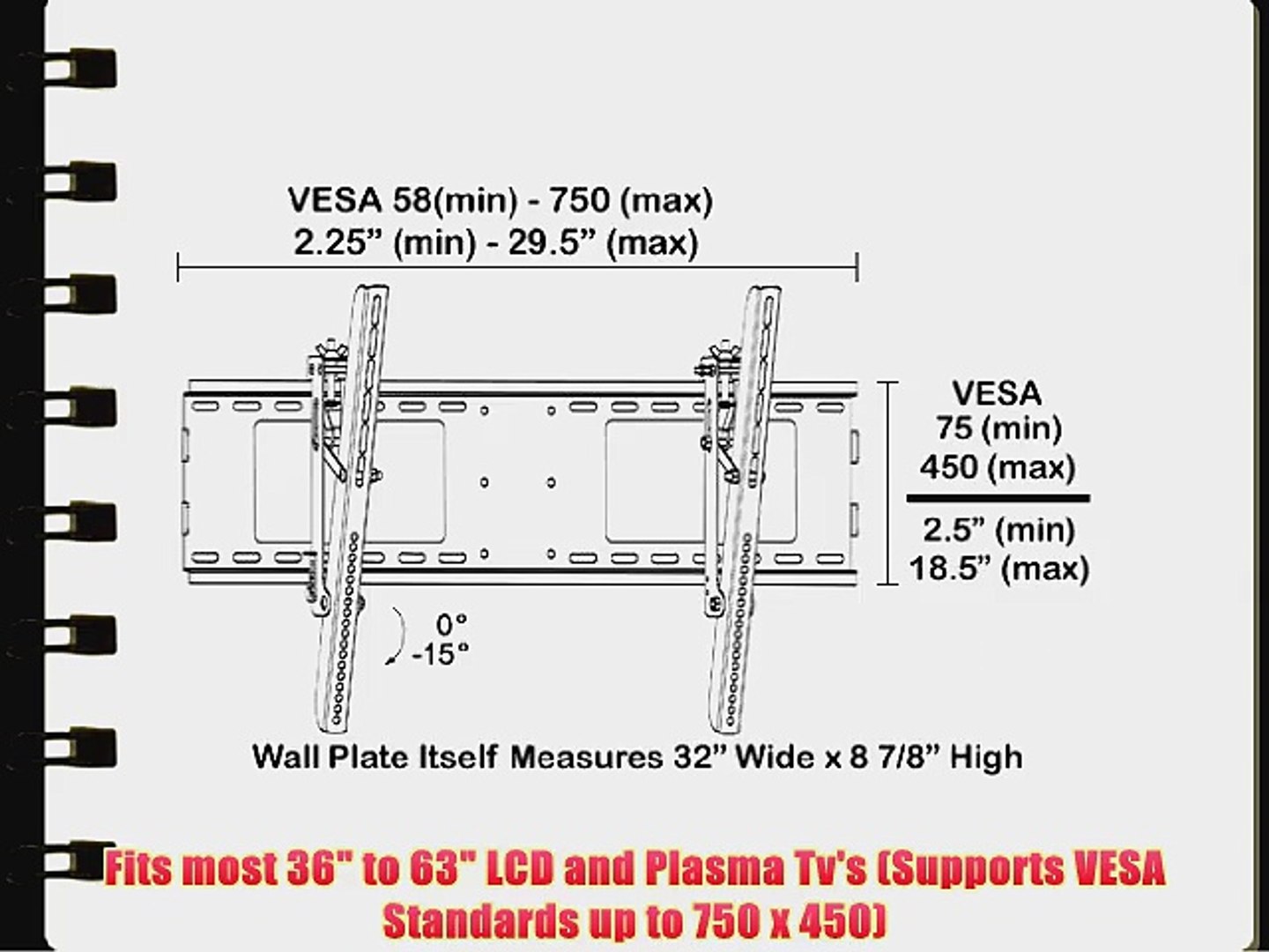 Large tilting tv wall mount bracket 42 43 50 55 58 65 70 75 80 inch 220 pound capacity vesa compatible low profile flat screens.
